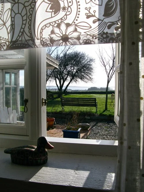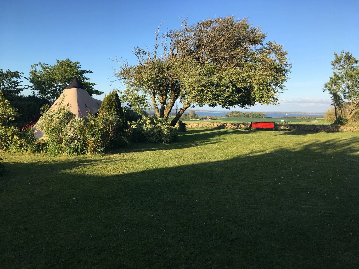 Vi har en stor have med mange muligheder for at finde en hyggelig krog. Det meste af haven var en åben mark med får for 15 år siden. Vi planlagde hvordan den skulle komme til at se ud og nu er det lykkedes efter at over 2500 træer og buske med flere har fået jordforbindelse. Se mere om udsigten her.
